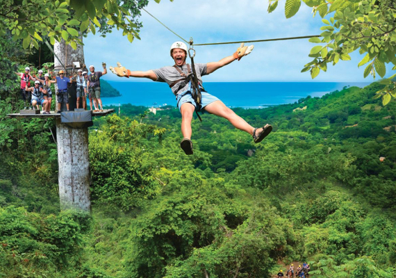 Jaco Zip Line Tour is an adventure, that does´t harm the environment. the location allow spectacular views, you will see scarlet macaws, chestnut mandible toucans and whiteface monkeys, The adventure starts on a 15-minute ride aboard our tractor. Once we reach the top of the mountain, the bilingual guides will explain all the safety procedures you must follow to enjoy your Jaco Zip Line, we descend to the bottom via a series of zip lines, 12 platforms and 10 cables with a total cable distance of 3.5 kilometers, among them longest cable in the area. .